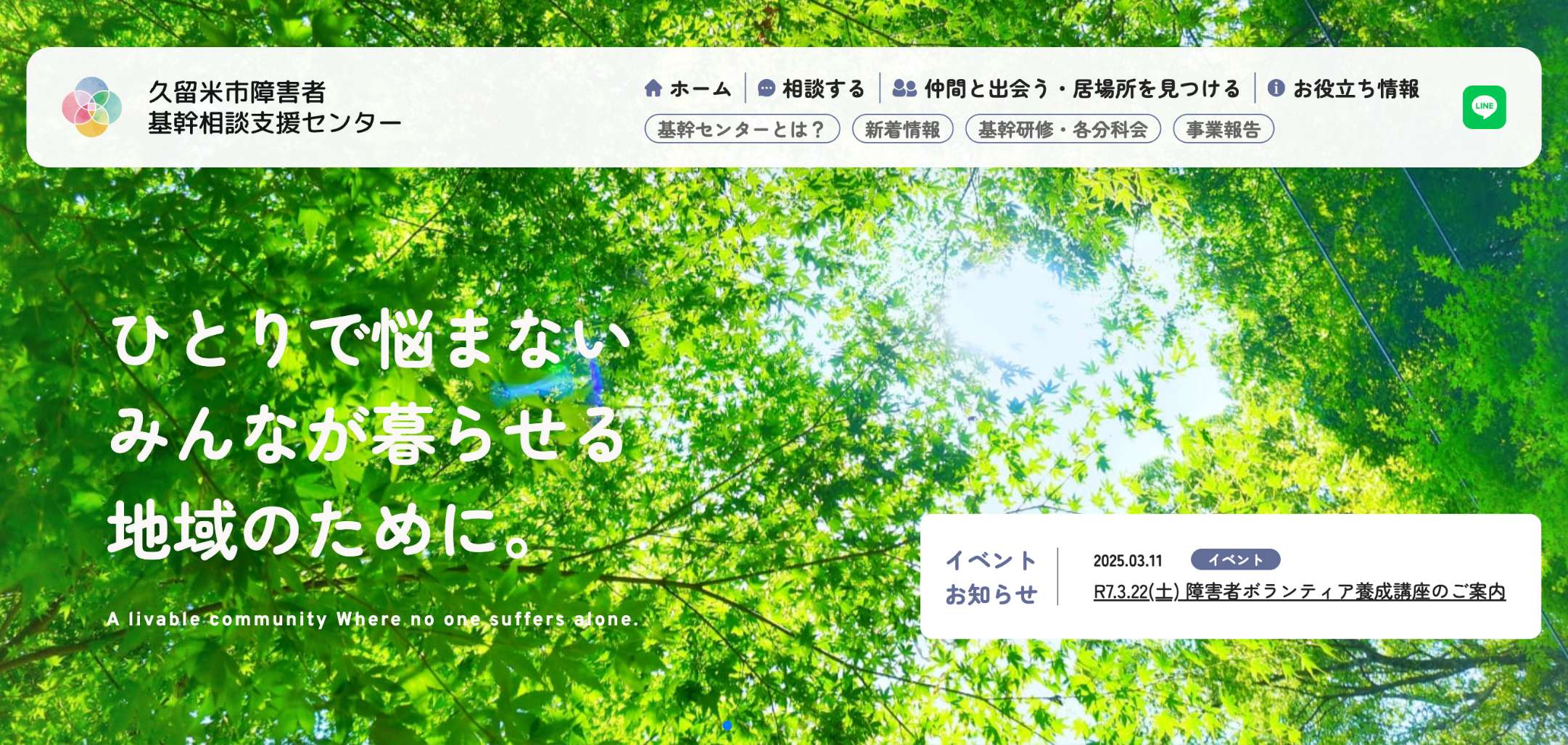 ひとりで悩まない・みんなが暮らせる・地域のために。引用:久留米市障害者基幹相談支援センター 公式サイト