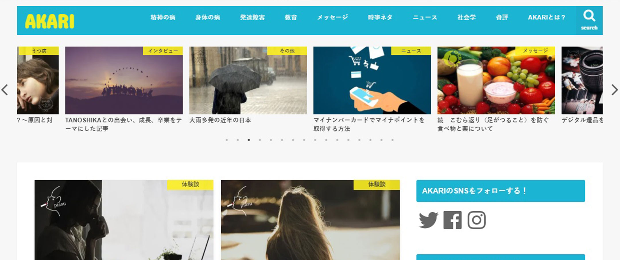 AKARIは生きていく上で「社会」や「自分自身」に何らかの障害を感じている人たちのための手助けになる情報を発信し共有するサイトです。