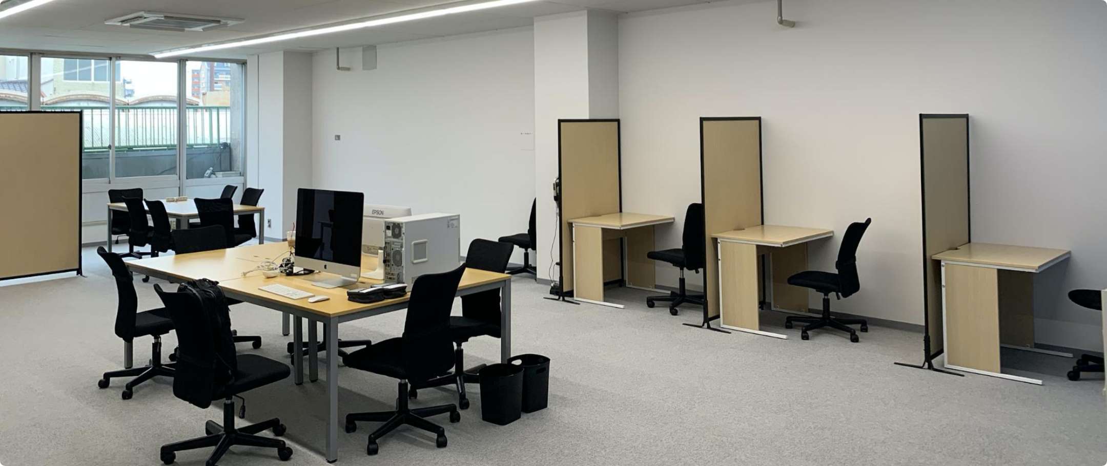 メンバーには窓際の日当たりの良い席や真ん中のテーブル席、ついたてのある個別スペースなど本人がやりやすい場所を選んで作業できるように工夫しています!