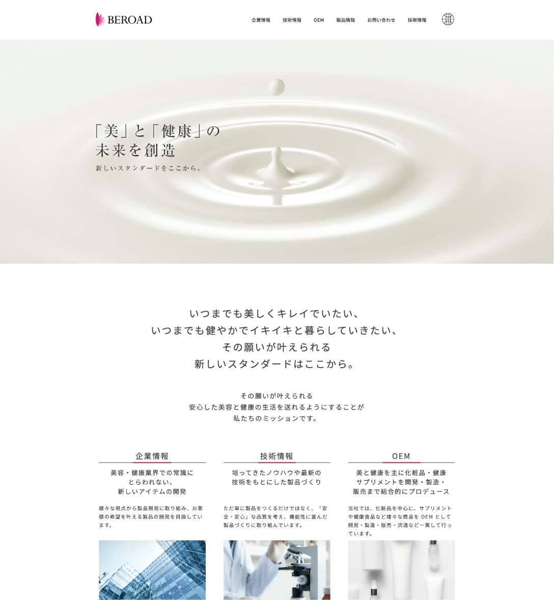 いつまでも美しくキレイでいたい、いつまでも健やかでイキイキと暮らしていきたい、その願いが叶えられる新しいスタンダードはここから。引用:株式会社BEROAD