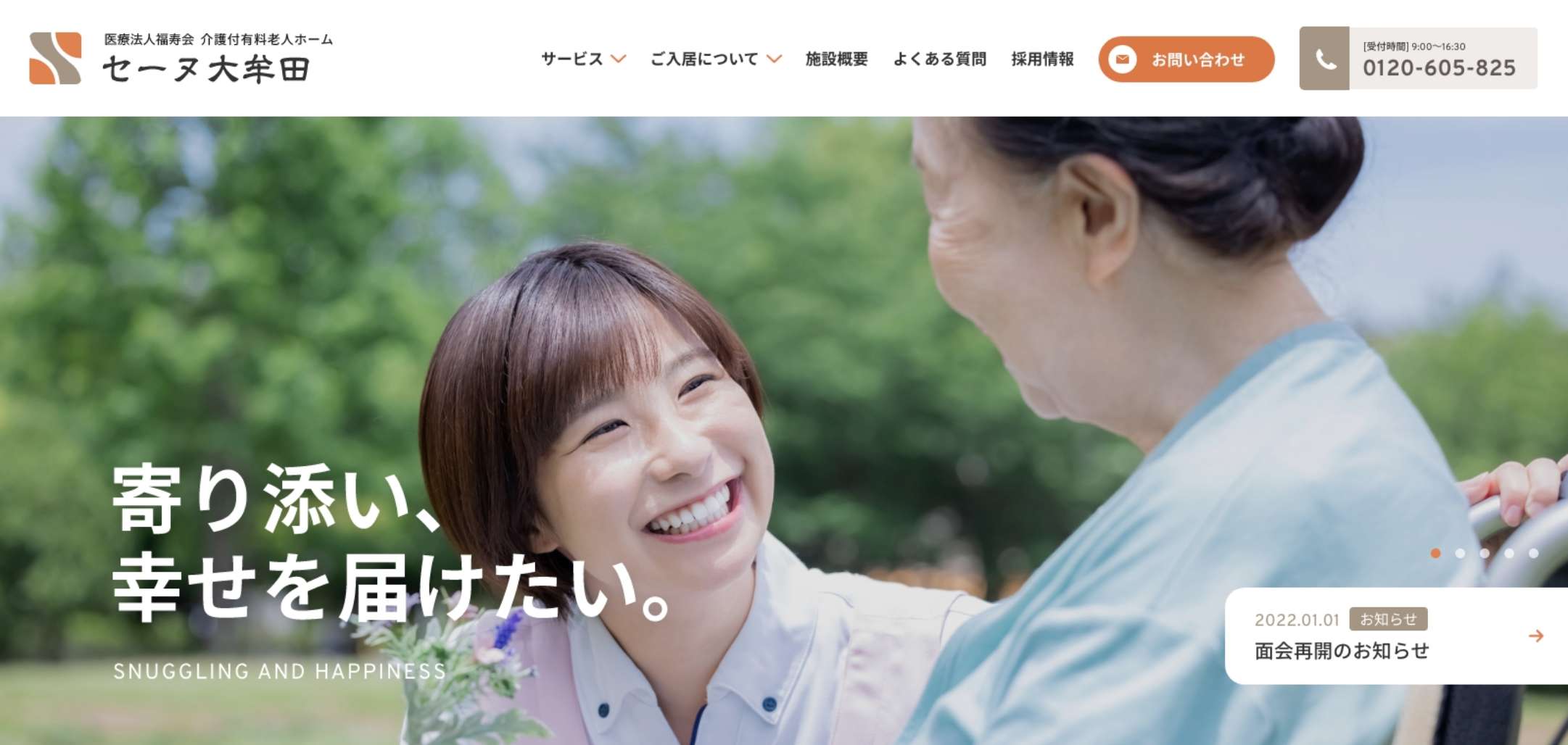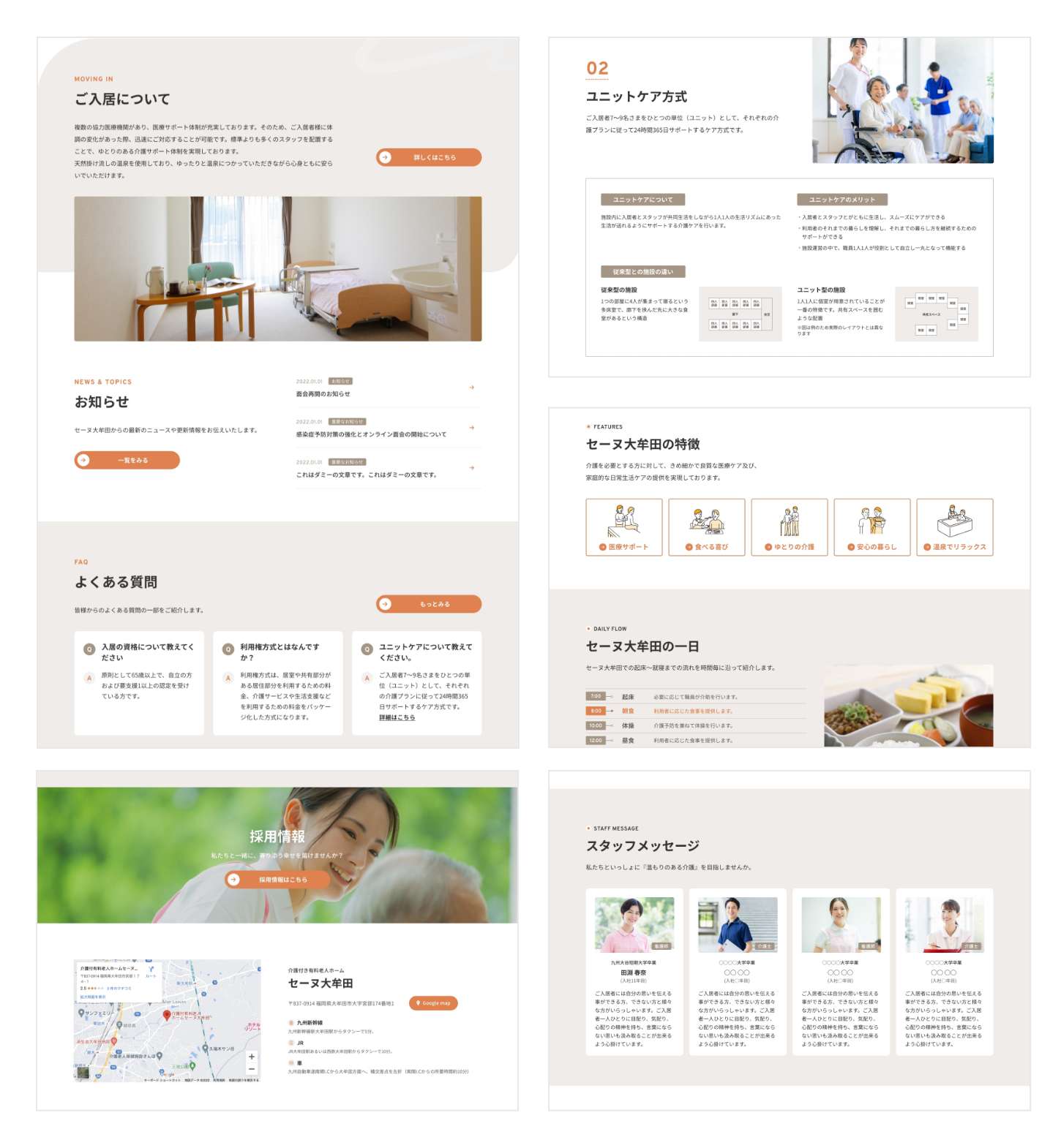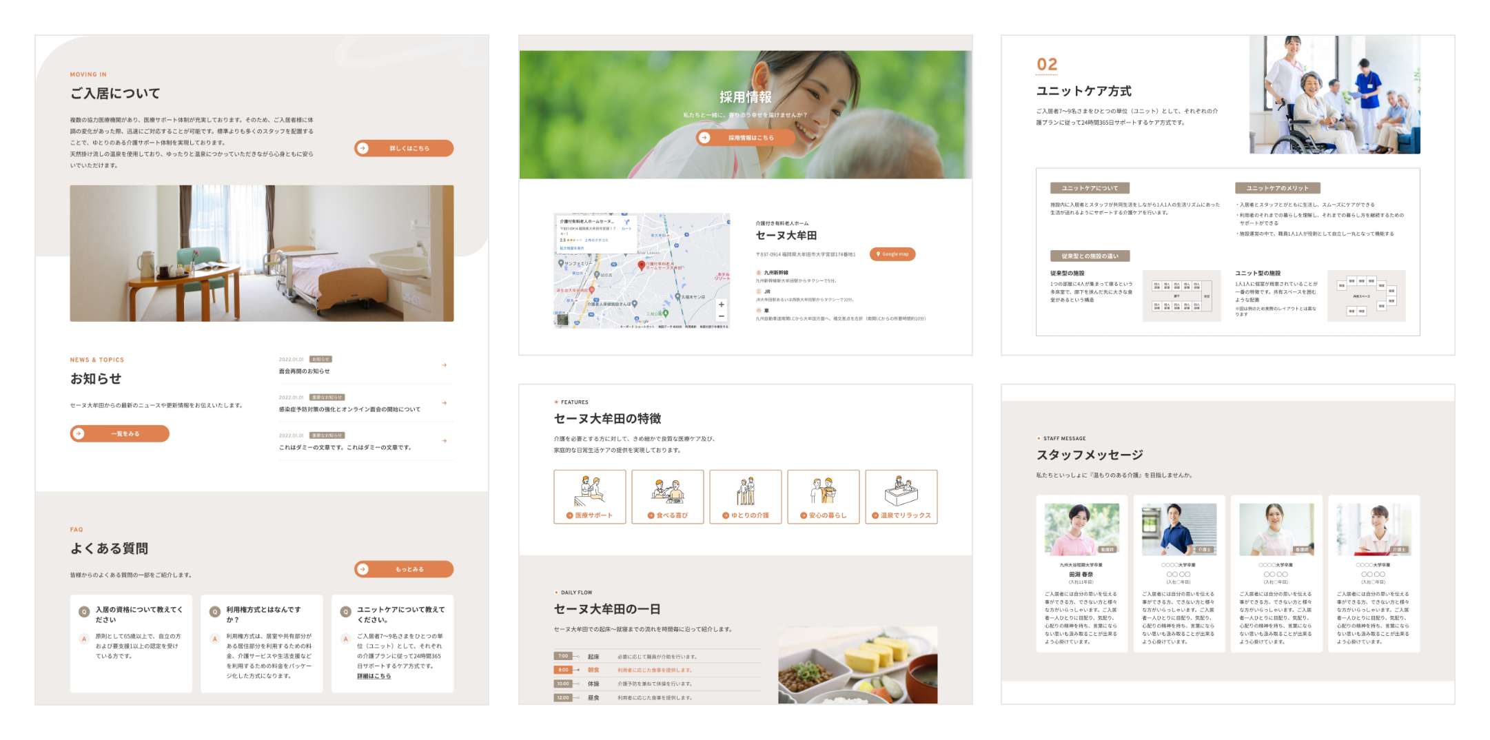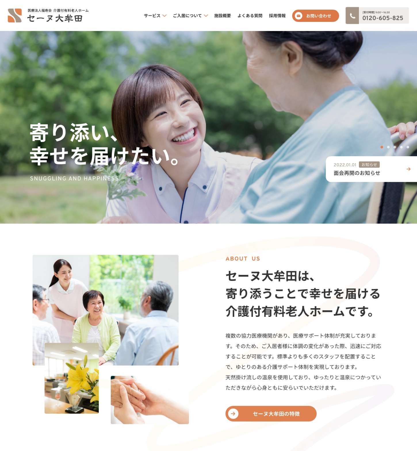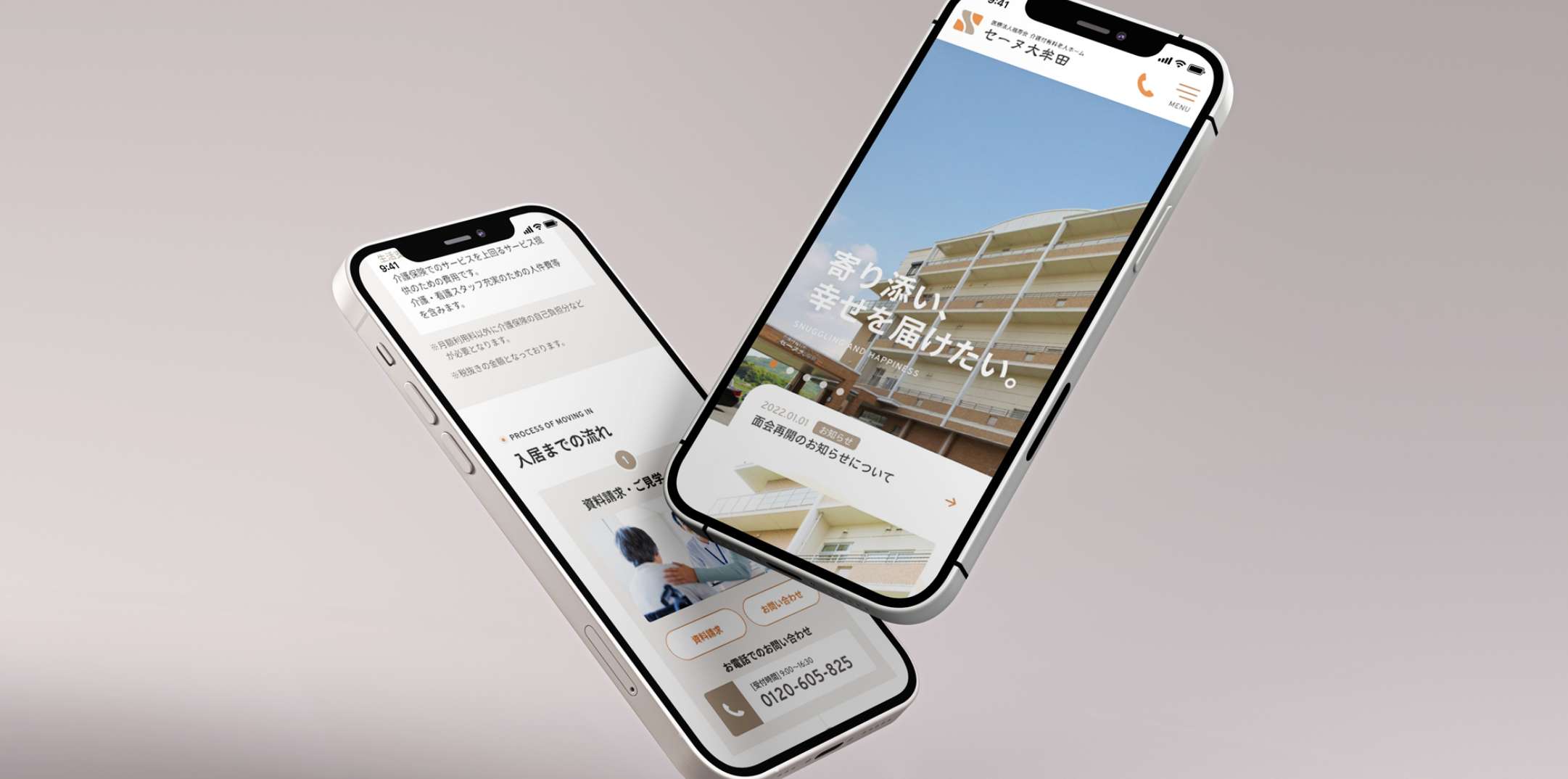 デザイン面では、利用者やご家族が安心感を持てるように、落ち着いた色調や余白の活かし方にこだわり、情報が見やすく伝わるようナビゲーションの明快さや文字の可読性を重視しました。また、施設の雰囲気が伝わる写真やビジュアルの選定にも力を入れています。