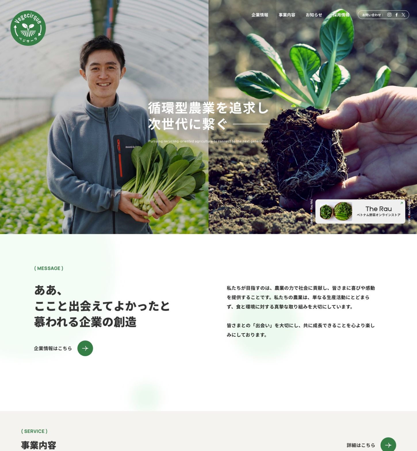 循環型農業を追求する企業「ベジサーク」様のコーポレートサイトを制作しました。