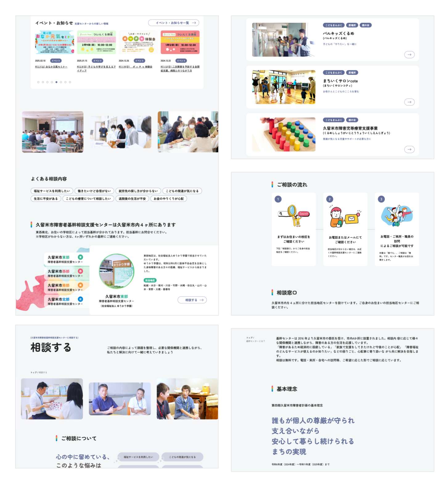 制作したウェブサイトは、久留米市の相談支援情報を掲載するもので、クライアントによる頻繁な情報更新に対応できるよう設計しました。